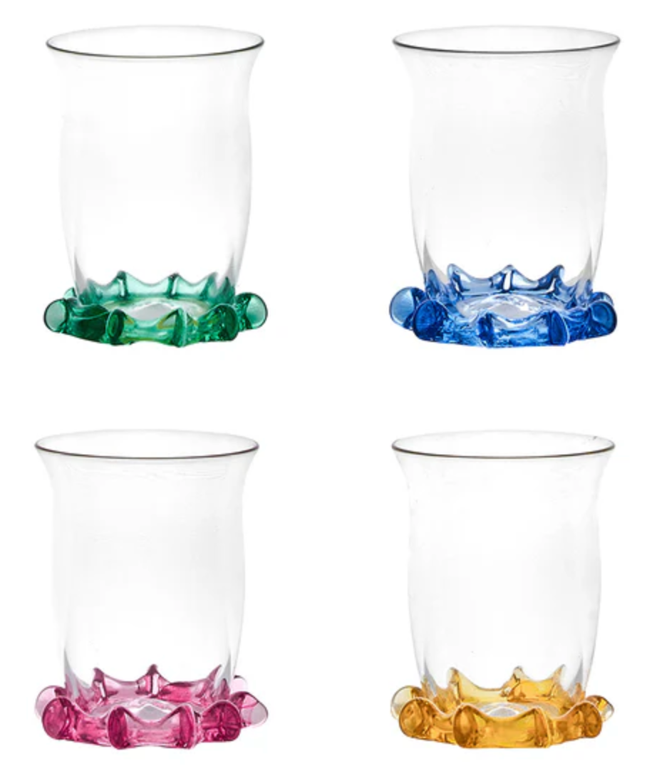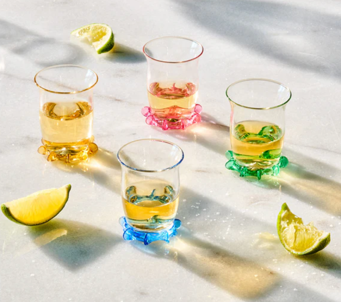 Pure cocktail-hour eye candy, these exquisite shot glasses are little works of art created by our master glass artisans. With happy hues and a sculptural ruffle trim, these petite glasses bring a chic splash of splendor to every occasion and make every sip a celebration. This set includes one of each color. Gift boxed.