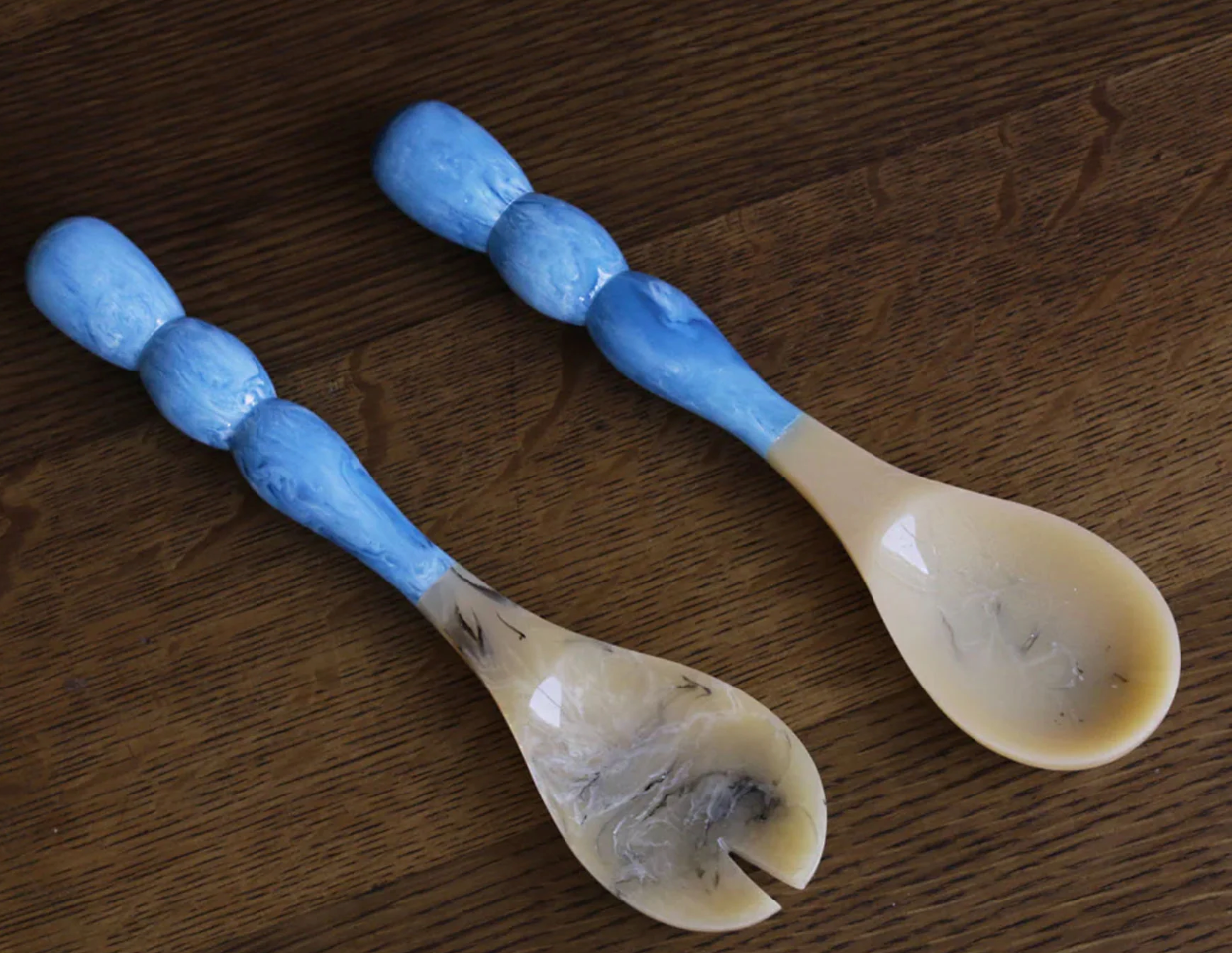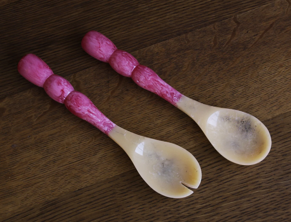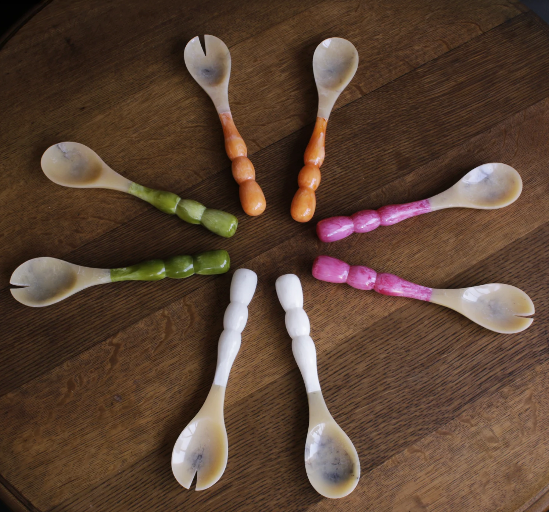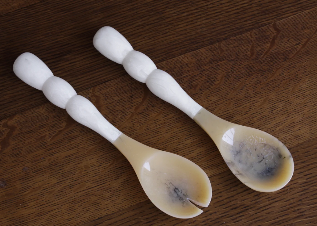 Beatriz Ball introduces translucent resin salad servers with vibrant “bubble” handles, and tines and spoons resembling natural horn. Five color combinations available. The RESIN Rio Bubble Salad Servers (Green) are perfect for serving salads, indoors or outdoors. Make a great gift.