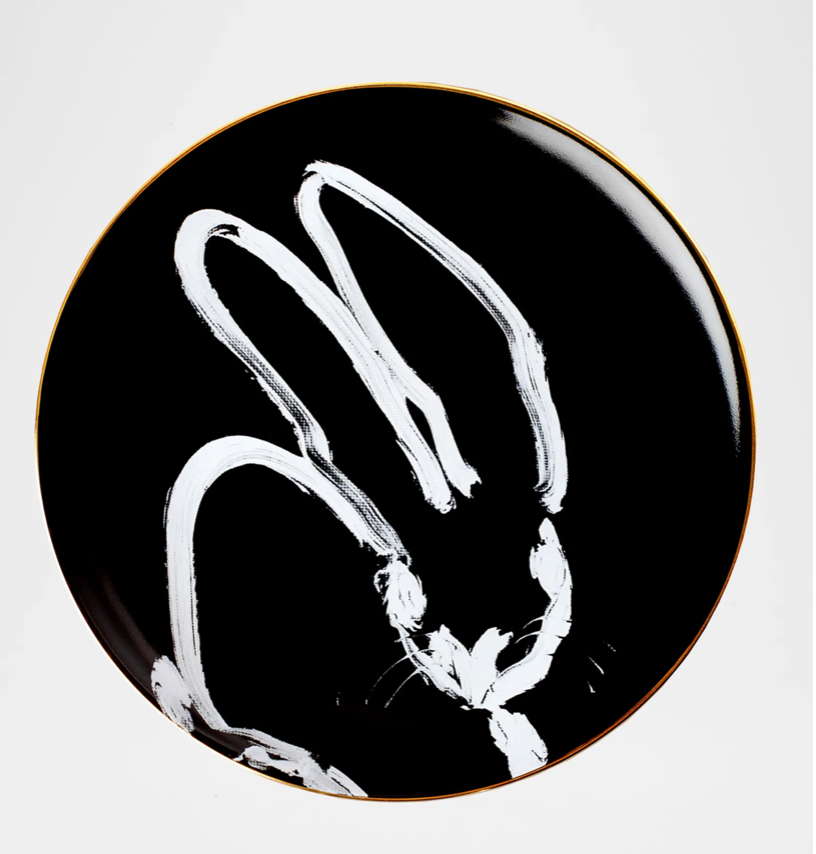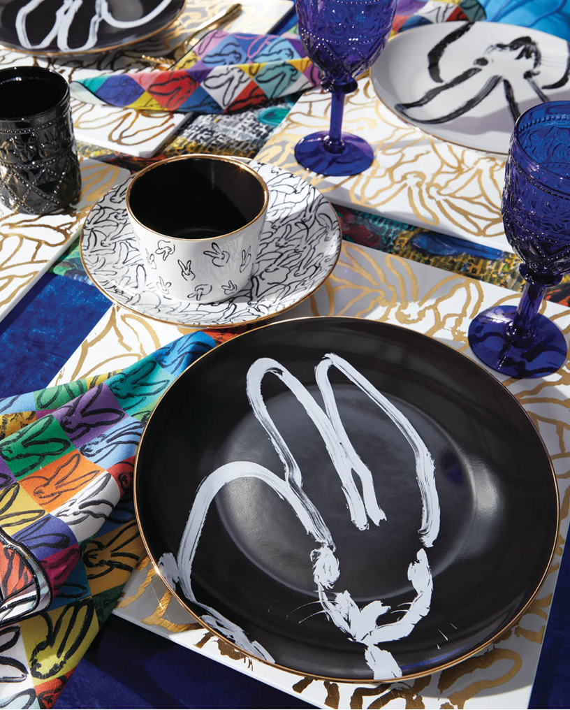 Hunt Slonem Rabbit Run Dinner Plate w/ Gold Rim
