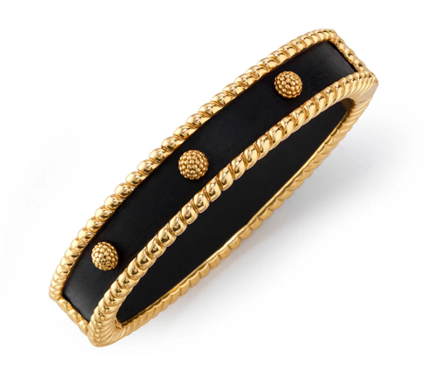 This go-to bangle is designed to mix, match, layer and stack alongside other bracelets for all the occasions and everyday adventures in your datebook. Featuring a threaded border and circumference of golden berries, this gleaming piece is gorgeous with everything—day to night.