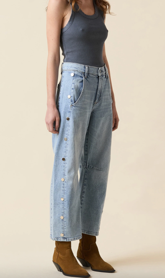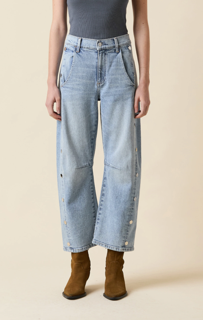 The Studded Frankie Barrel features a relaxed, wide-straight leg silhouette with a softly curved outseam. Crafted from ultra-soft, lightweight denim, this standout style is finished with studded detailing along the outseams for an effortlessly edgy touch. Made in Los Angeles